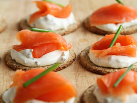 Tasty salmon apetizers with sour cream